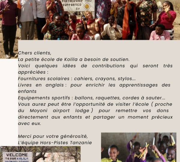 Nous investissons dans des projets locaux tels que l’entretien d’écoles comme celle de Kolila située à proximité du lodge « Moyoni » en Tanzanie.